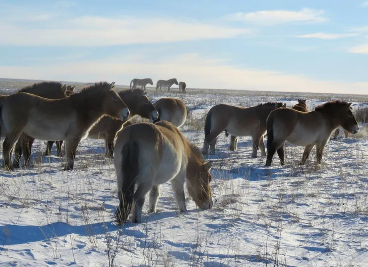 Во время учёта зафиксировали более десяти косуль, несколько лисиц и стаи куропаток. Встретился и табун лошадей Пржевальского, которых мониторят отдельно. По словам инспекторов, животные, заметив снегоходы, явно ждали угощения, но получили лишь привет и запись в журнале наблюдений.