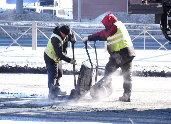 В Оренбурге заливают ямы 200-градусным асфальтом