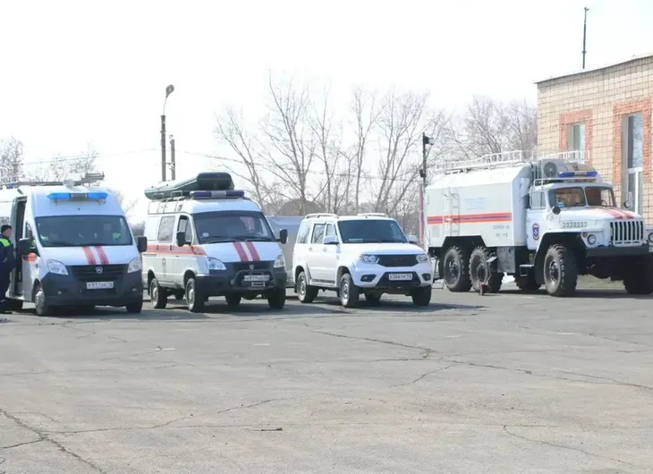 На площадке выстроили 25 единиц техники — от самосвалов и вакуумных машин до вездеходов, снегоболотохода и катеров. В готовности также пожарные расчеты, скорая помощь и экипажи ДПС.